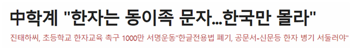 ![]() ▲ 한 신문이 진태하 교수가 초등교에서 한자교육하고 한글전용법을 폐기하게 하려고 “한자는 동이족 문자”라면서 우리 조상이 만든 글자인 것처럼 거짓말하는 것을 진짜처럼 보도한 신문기사 제목이다. © 리대로 |