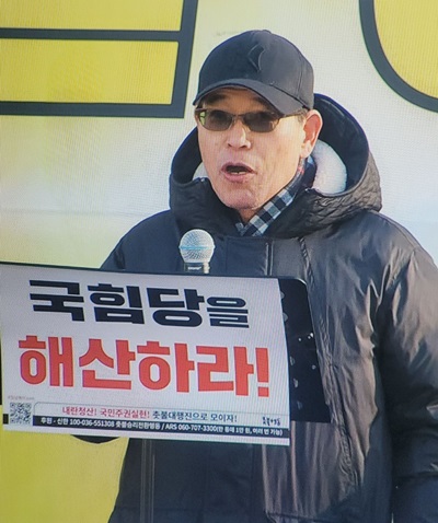 남명진 가천대 교수가 24일 오후 175차 내란청산 촉구 촛불집회 무대에 올라 12.3 내란과 관련해 "서울대 법대 출신이 독점 권력구조로 카르텔이 형성돼 잘못을 해도 견제를 받지 않았다"고 목소리를 높였다.