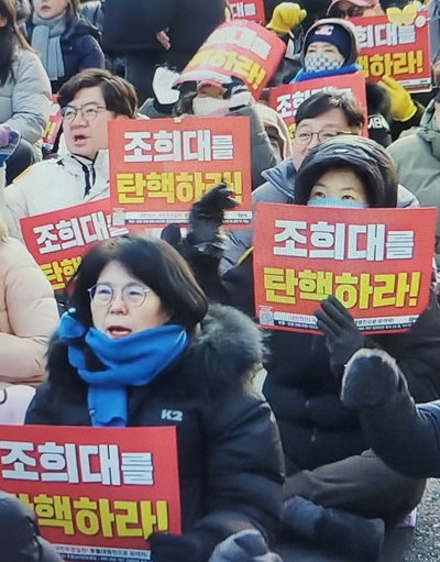 기조발언을 한 김은진 촛불행동 공동대표는 "지귀연에 이어 우인성까지 조희대 사법부의 내란세력 지키기 총력전이다. 조희대를 이대로 두면, 내란과 국정농단 재판이 항소심, 상고심으로 갈수록 조희대 지시대로 움직이는 판사들이 재판을 할 것"이라며 "하나마나한 재판이 되지 않기 위해선 국회는 지금 당장 조희대를 탄핵해야 한다"고 촉구했다.
