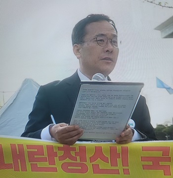 그는 먼저 "이곳은 kbs 앞이다.그리고 2024년 12월 3일 내란을 진압하러 모였던 국회 앞이기도 하고 12월 14일 윤석열 탄핵안 가결 순간을 맞이했던 곳이기도 하다"며 "감회가 새롭습니다만, 내란이 일어난 지 1년하고도 4개월이 지나가고 있다니 내란청산이 너무 더딘 것 아니냐"고 반문했다.