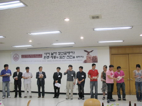 이종일 교수협의회 회장은 "아직 갈 길이 멀다. 반동 움직임 있어 주명건 전이사장이 학교에 돌아오려 하고 있다. 민주화운동을 뒤로 돌리려하고 있다. 이 자리 밀알 되어 독재와 전횡이 되풀이되지 못하도록 해야 한다"며 임시이사 선임이 늦어지는 학교 상황에 대해 우려를 표명하며 동문들이 세종대 민주화 완성에 동참하는 것을 축하했다.